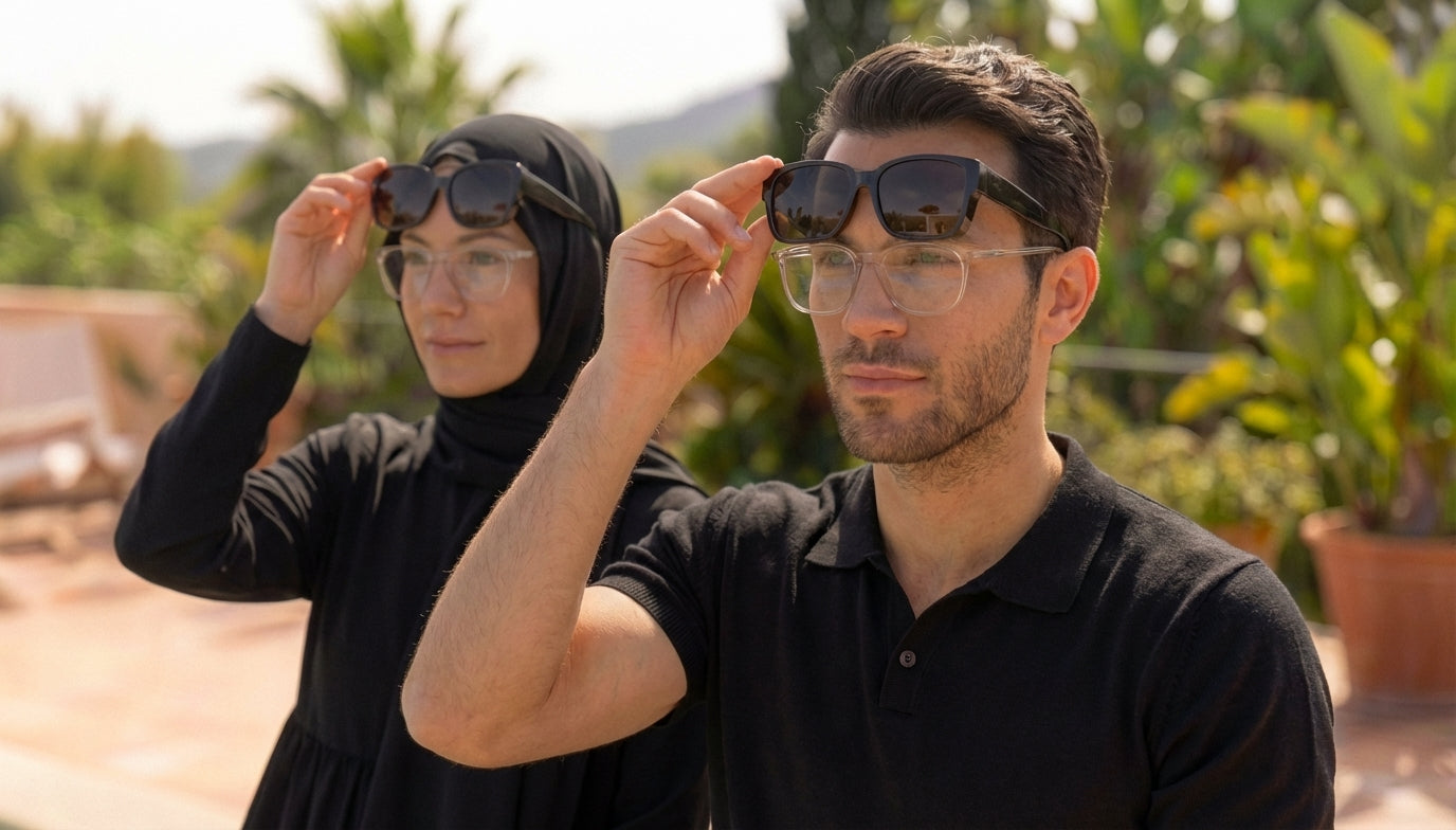 Découvrez comment rester élégant tout en protégeant vos yeux de l’éblouissement grâce aux surlunettes de soleil par-dessus vos lunettes de vue. Conduire n’a jamais été aussi sûr et stylé !